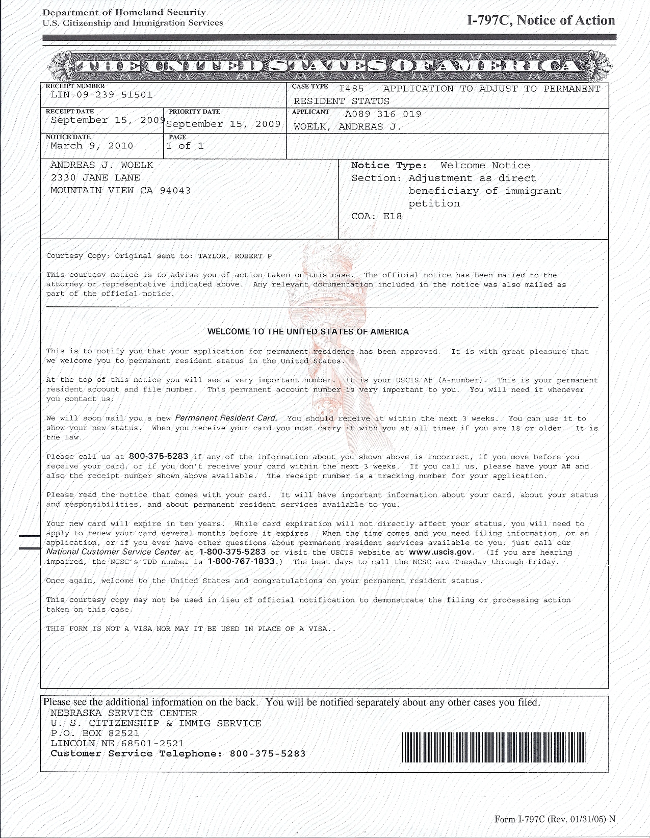 Muss aber nicht sein. Im Brief findet sich die Ankündigung, dass mein Antrag auf unbeschränkte Aufenthaltserlaubnis in den USA, besser bekannt als Green Card, genehmigt wurde und ich meine Green Card innerhalb von 3 Wochen erhalten werde.