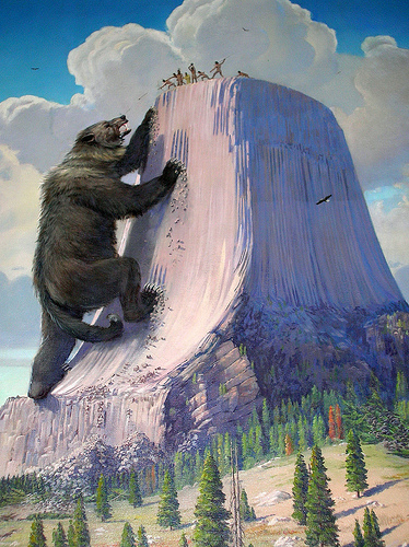 Heutzutage klettern keine Bären mehr am Devils Tower. Dafür rackern sich Sportkletterer ab, die mehr oder minder senkrechte Wand zu bezwingen. Wir fragen uns, wie das zusammengeht: sportlicher Eifer und heiliger Berg.