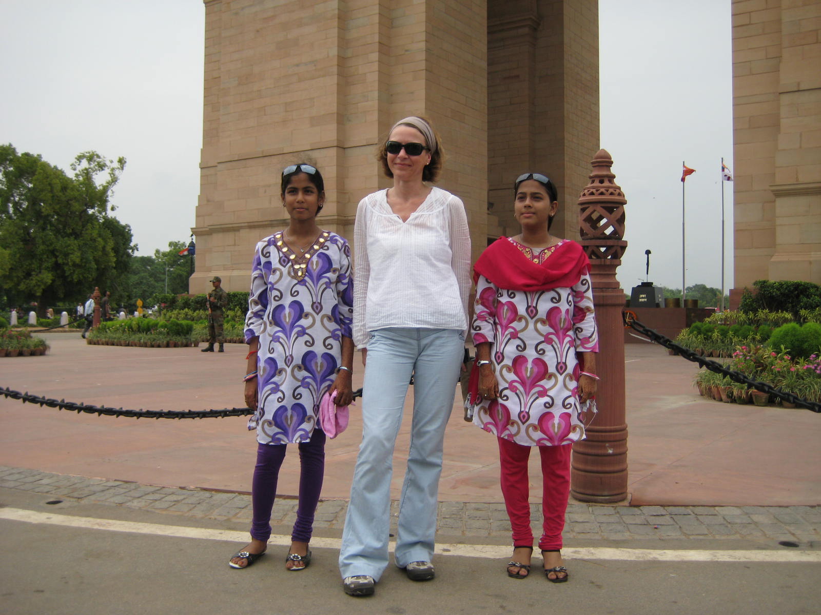 Dann weiter zum monumentalen India Gate, der dem Arc de Triomphe nachempfundenen Gedenkstätte für die in den Kriegen gefallenen indischen Soldaten. Chris wird von zahlreichen Familien um ein gemeinsames Foto gebeten; tapfer lächelt sie in die Digitalkameras. Schon interessant, dass westliche Besucher auch heutzutage noch ein begehrtes Fotomotiv sind, zumal in der Hauptstadt.