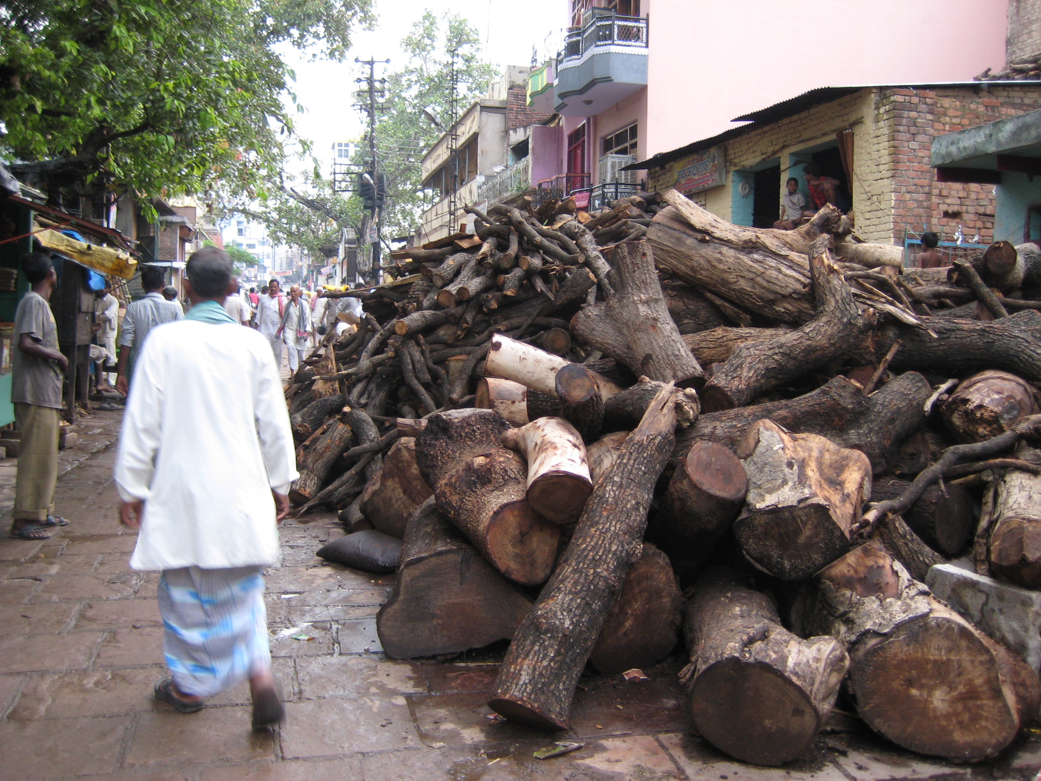 Brennholz für Feuerbestattungen säumen die Straßen zu den Ghats 22. August 2011 • 2048 × 1536 • Nachtzug nach Varanasi