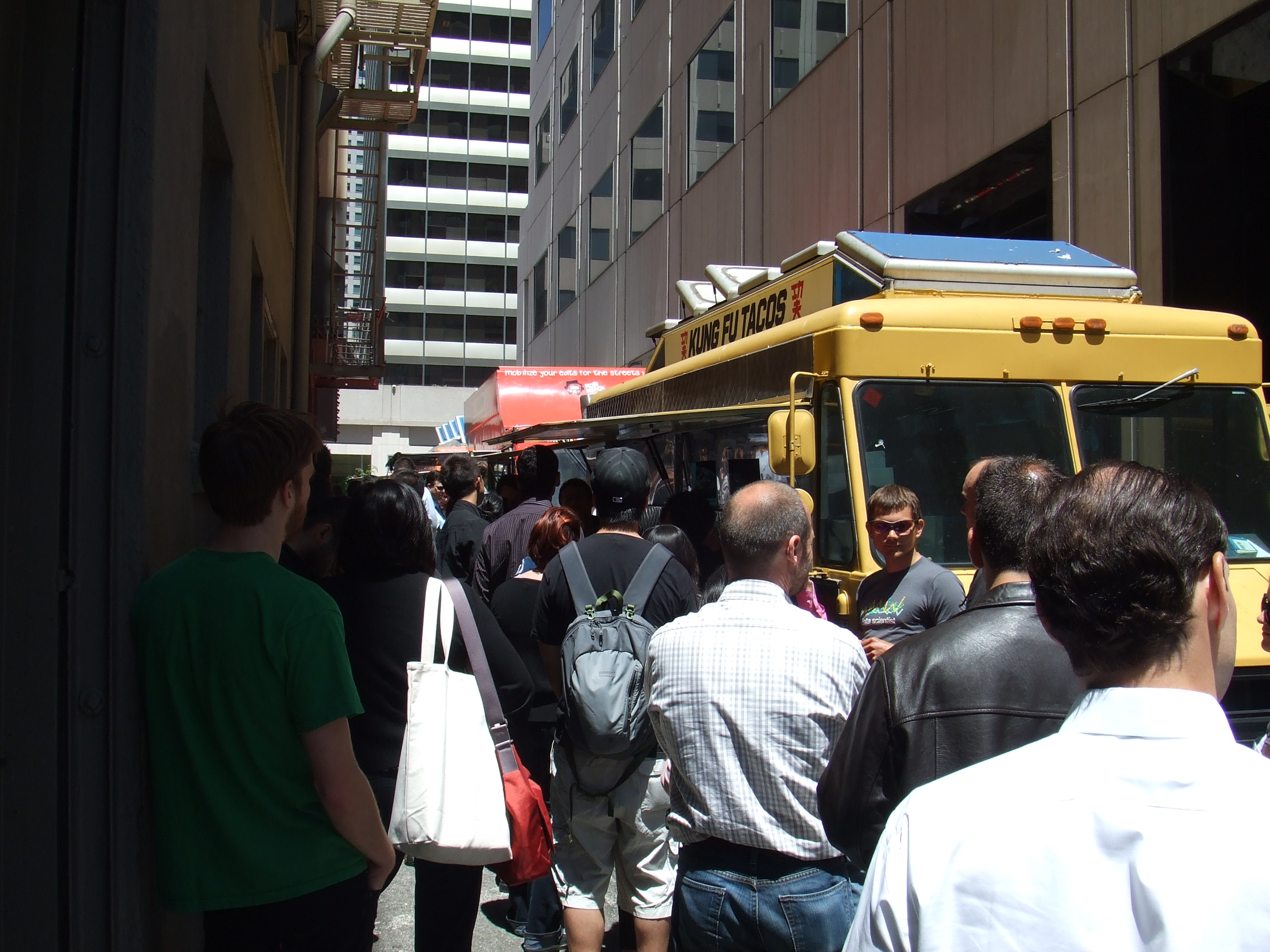 eine Zigarre spendiert, dem schlacksigen Dot-Com-Entrepreneur, der gleichzeitig telefoniert und sich am Indian-Food-Truck seine Kati-Roll bestellt, auch der ganzkörpertätowierte Obdachlose, der mit leerem Blick einen Einkaufswagen mit seinen wenigen Habseligkeiten den Bürgersteig entlang schiebt.