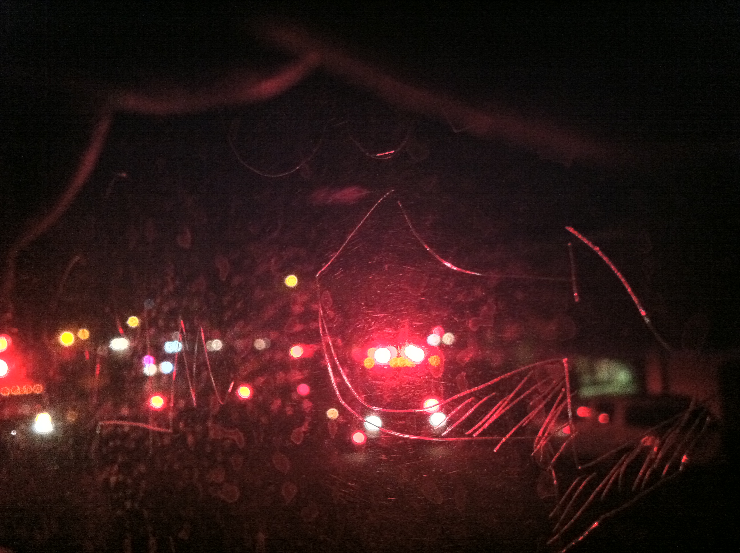 Es dauert knapp 15 Minuten bis ein Schaffner durchs Abteil kommt und eine erste Einschätzung der Lage wagt: Der Zug hätte ein auf den Schienen stehendes Auto gerammt. Polizei und Rettungswagen seien auf dem Weg. Kurze Zeit später ist die Dunkelheit in ein pulsierendes Rot getaucht: Feuerwehr, Rettungswagen, Polizei. Über uns kreist ein Hubschrauber. Das Licht im Zug erlischt. Aussteigen dürfen wir nicht.