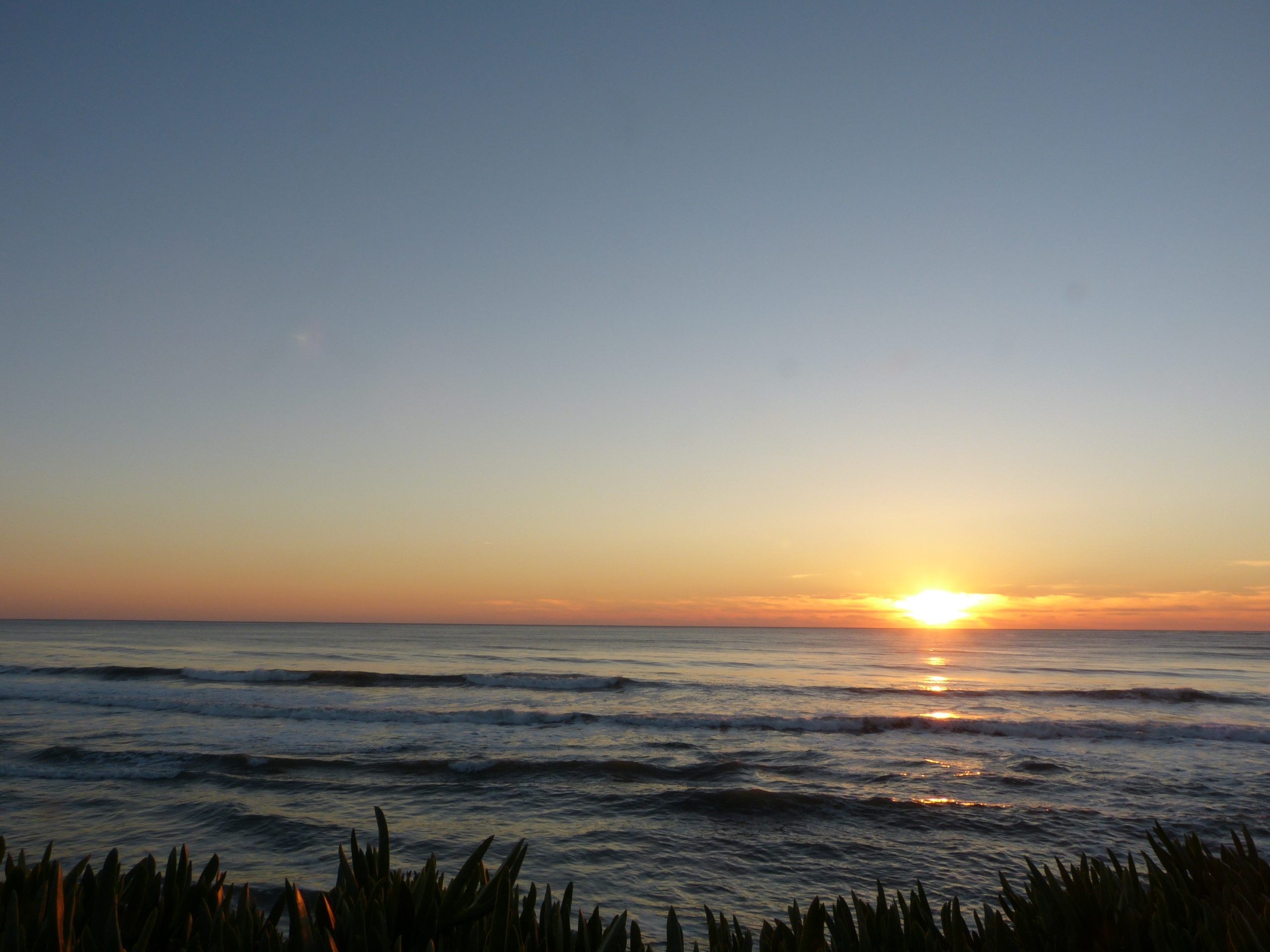 So entspannt sind wir noch nie ins neue Jahr gerutscht. Zu zweit. Zu Hause. Nachdem die Champagnerflasche leer ist, fallen wir ins Bett und wachen erst am Mittag wieder auf. Ein Blick durch die Lamellen verspricht Bilderbuchwetter, und das iPhone versichert, dass auch am Pazifik die Sonne am wolkenfreien Himmel scheint. Nach einem ausgedehnten Frühstück beschließen wir daher, unseren Neujahrsspaziergang an den Strand von Half Moon Bay zu verlegen. Gute Entscheidung: Die Seeluft weht uns um die Nase, in der Ferne springen Delphine um die Wette, und als krönenden Abschluss gibt es einen postkartenreifen Sonnenuntergang. (Thomas Kinkade hätte es nicht besser hinbekommen.) Wenn die restlichen 364 Tage halten, was Tag 1 verspricht, wird 2013 ein gutes Jahr. In diesem Sinn: ein frohes und glückliches neues Jahr!