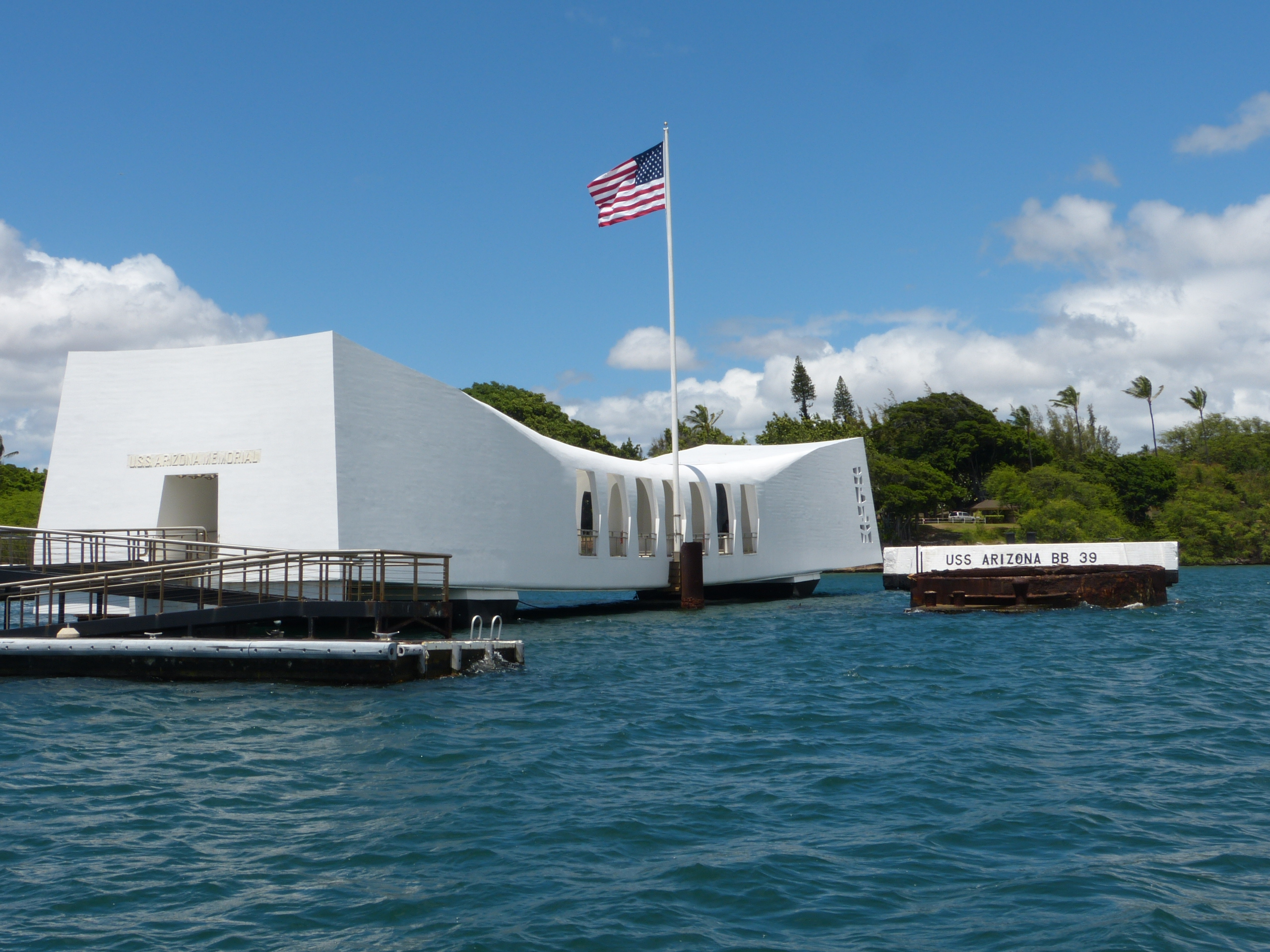 Heute ist der einstige Kriegsschauplatz eine Gedenkstätte. Die USS Arizona wurde nie geborgen; wie ein rostiges Skelett liegt das Schlachtschiff im Wasser. Darüber ruht das von Alfred Preis entworfene USS Arizona Memorial von 1962.