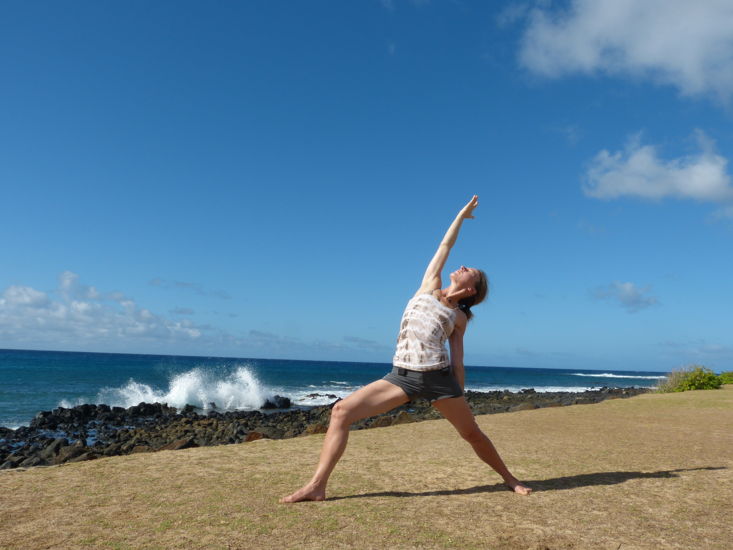 Morgen-Yoga am Strand: Chris in der Reverse-Warrior-Pose 27. October 2013 • 2560 × 1920 • Hangin’ Loose