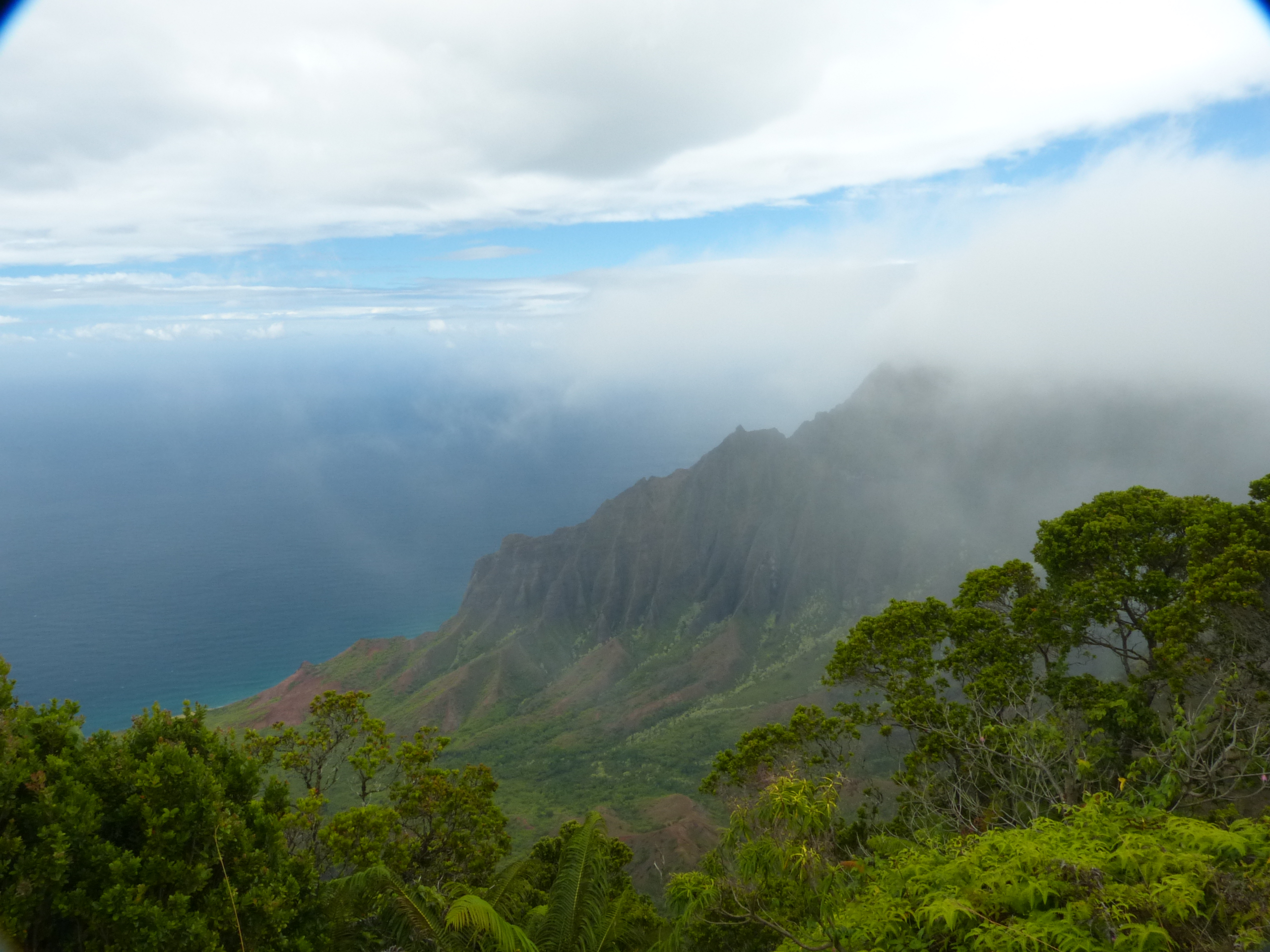 Glück gehabt: Für einen kurzen Moment zieht die Wolkendecke auf, und wir erhaschen einen Blick auf Felsen der Nā-Pali-Küste 27. October 2013 • 2560 × 1920 • Hangin’ Loose