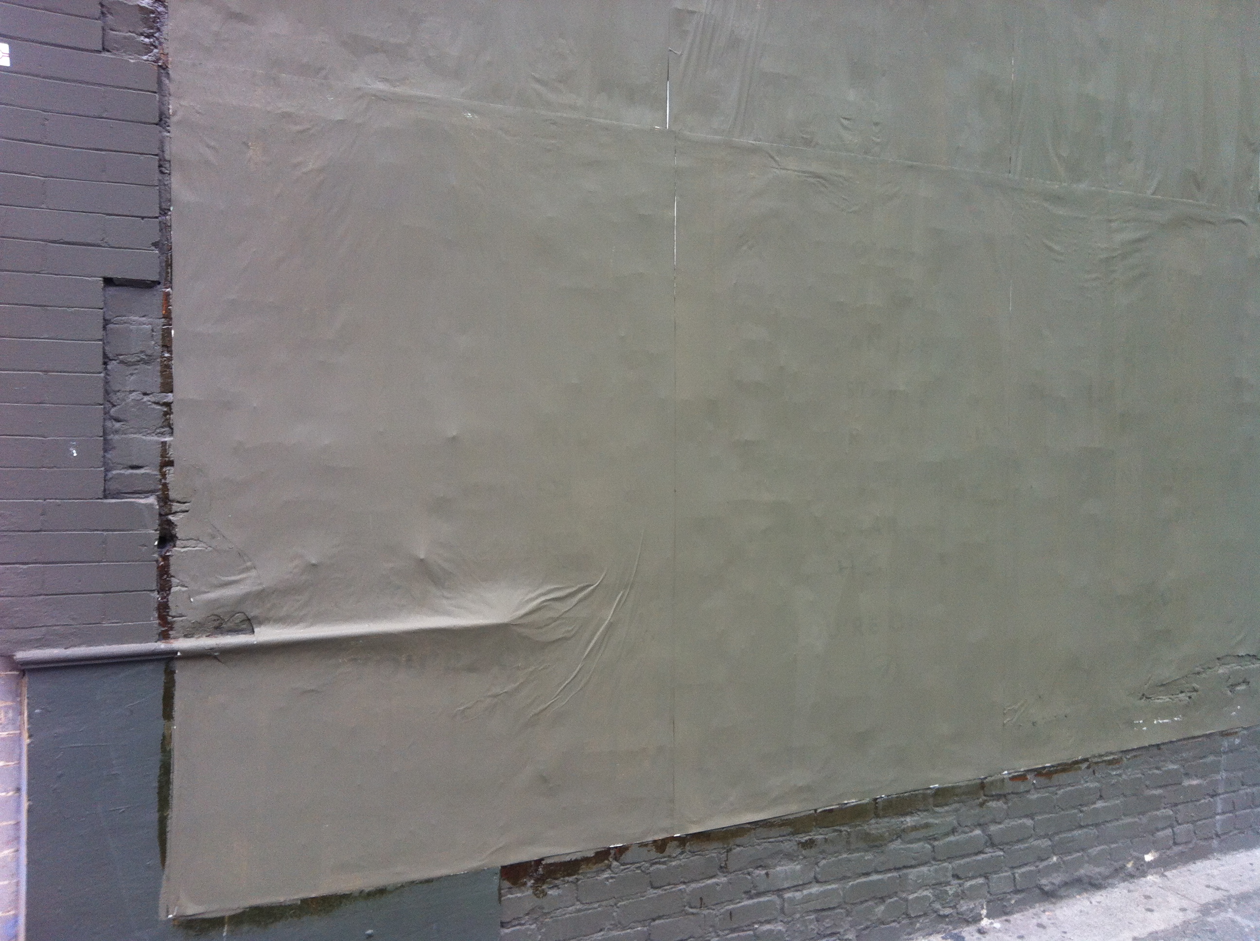 Eine Woche später sieht die Wand dann so aus: Statt Werbeplakate grüßt eine graue Farbfläche die Vorbeieilenden. Wer für die Übermalung der Plakate verantwortlich zeichnet, ist nicht klar. Ich vermute allerdings, dass es der Besitzer des Gebäudes ist, der nicht ungefragt – und vor allem unentgeltlich – Werbung an seinem Eigentum duldet.