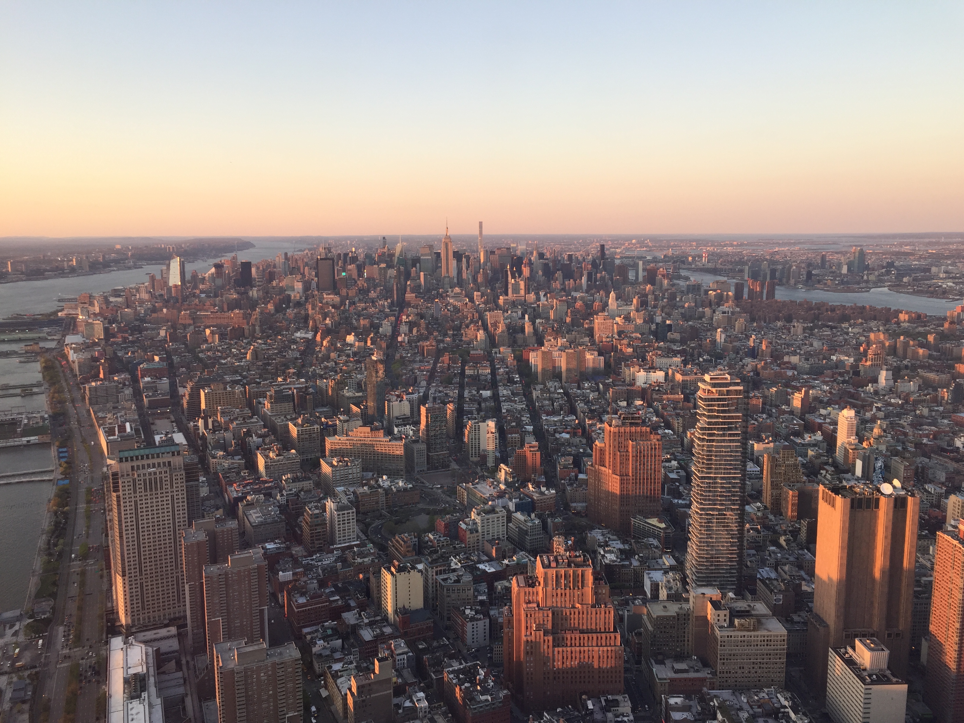 Sicht vom One World Trade Center (1 WTC) auf das abendliche Manhattan 5. June 2016 • 3264 × 2448 • Ein Wochenende in New York City