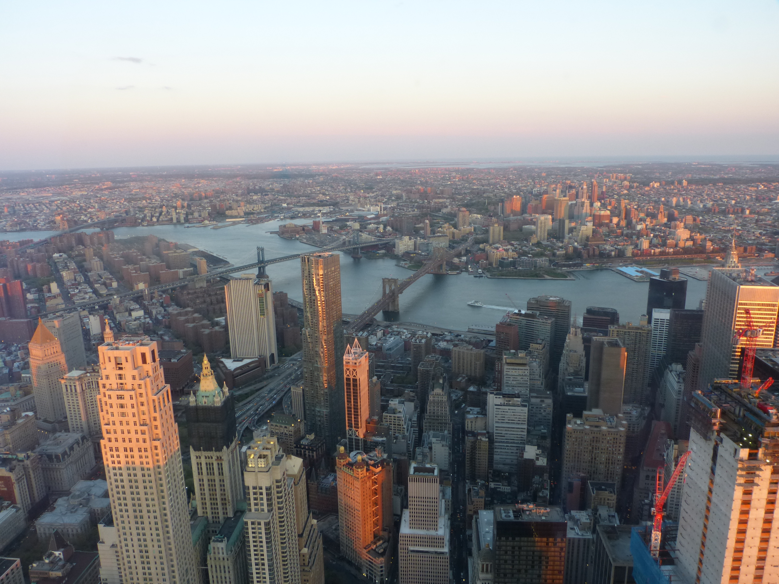 Was für eine Aussicht: Blick vom 1 WTC auf den East River mit seinen ikonischen Brücken 5. June 2016 • 2560 × 1920 • Ein Wochenende in New York City