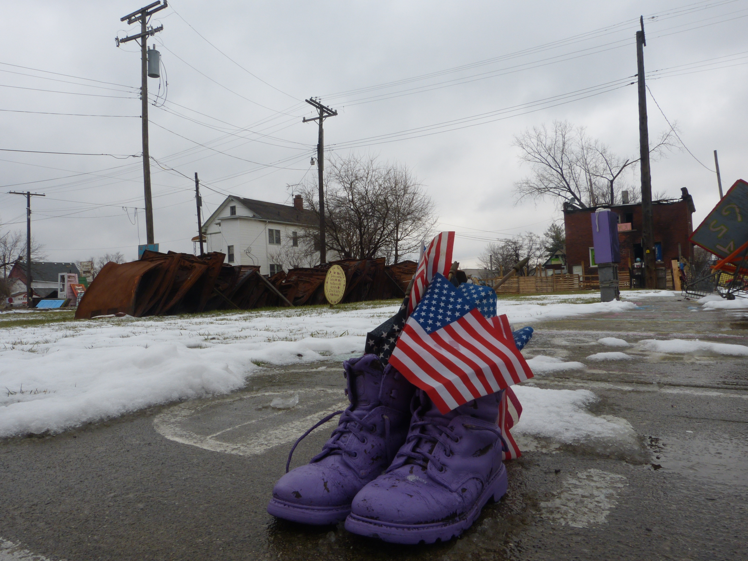 Zugegeben, Tyrees Gedankengängen ist nicht immer leicht zu folgen, doch mir wird klar, dass ich hier gerade von einem Augenzeugen den Fall Detroits nahegebracht bekomme: die Rassenunruhen der späten 1960er-Jahre, der Verfall einst bürgerlicher Nachbarschaften, der Einzug von Kriminalität und Gewalt, der städtisch angeordnete Abriss von Häusern und die zahllosen Brandstiftungen, für die nie jemand zur Rechenschaft gezogen wurde. Das Heidelberg Project ist Tyrees Reaktion auf die Unbill der Zeit, seine “Medizin”, wie er sagt, gegen die Hoffnungslosigkeit und der Versuch, durch die Kunst, neue soziale Gemeinschaften zu bilden. Vor diesem Hintergrund scheint mir seine Frage, was ich denn gegen die gesellschaftliche Ungleichheit täte, gerechtfertigt. Und ich schäme mich im Stillen dafür, darauf keine klare Antwort zu haben.